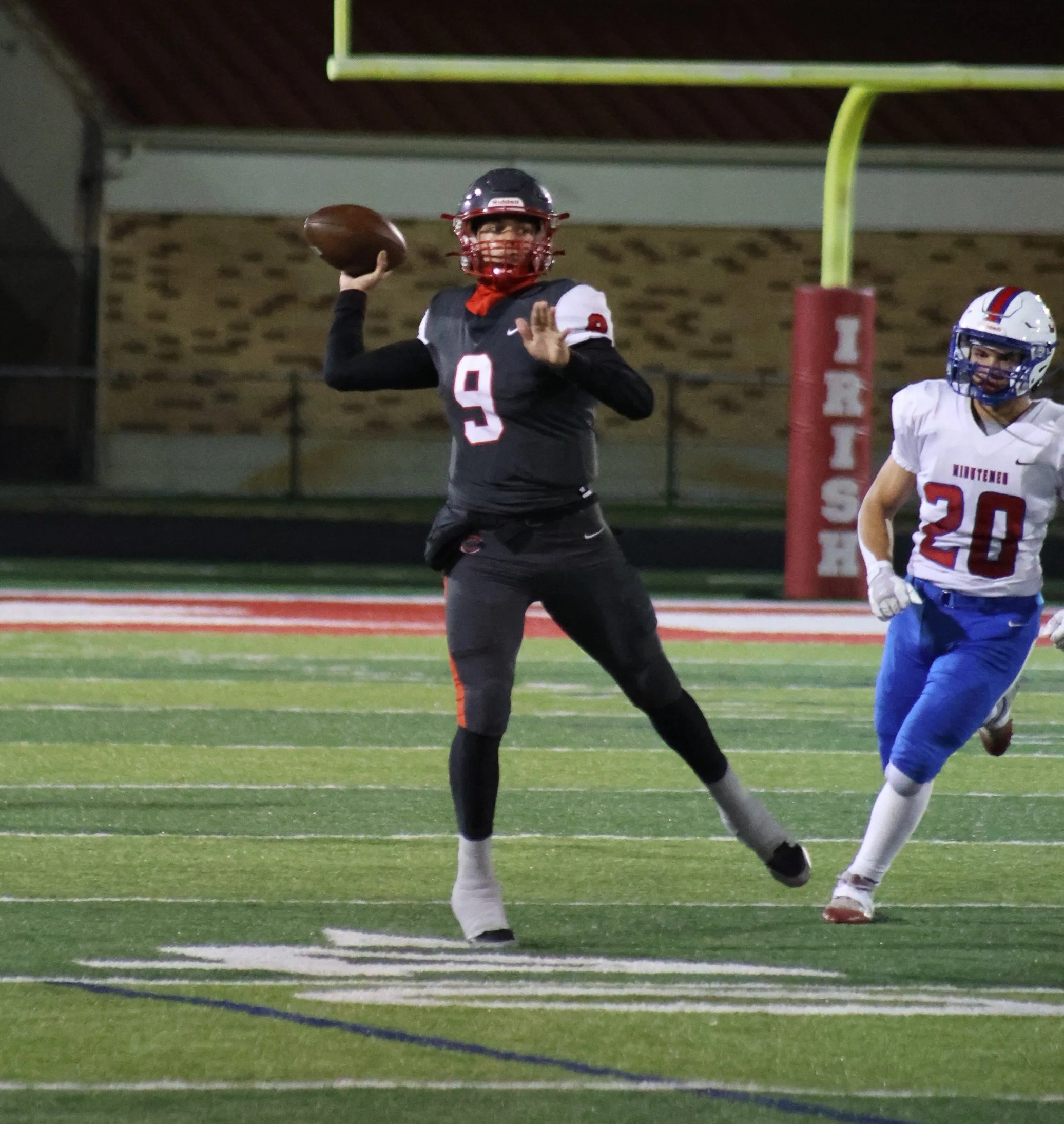 The Fighting Irish tallied points on each of their initial 6 possessions against the Minutemen, helping the 2-time reigning state champions build an insurmountable 42-0 advantage at the intermission. For the 2nd-straight week, the Scarlet & Gray played the 2nd half with a running clock and extended its postseason winning streak to 14 games.