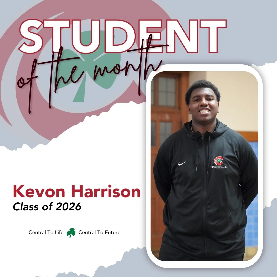Kevon Harrison is a member of the National Honor Society, and he is an Irish Ambassador.  He played offensive line and was a captain for the Fighting Irish football team, he plays center on the basketball squad, and he has been on the track & field team.  He joined the Glee Club this year.  He was also chosen as one of the top five candidates for SuperFella to represent the Class of 2026, along with classmates Christian Kynard, Zenaje Liggons, John Rudski, and Draden Wardrop.  The winner will be announced February 6.